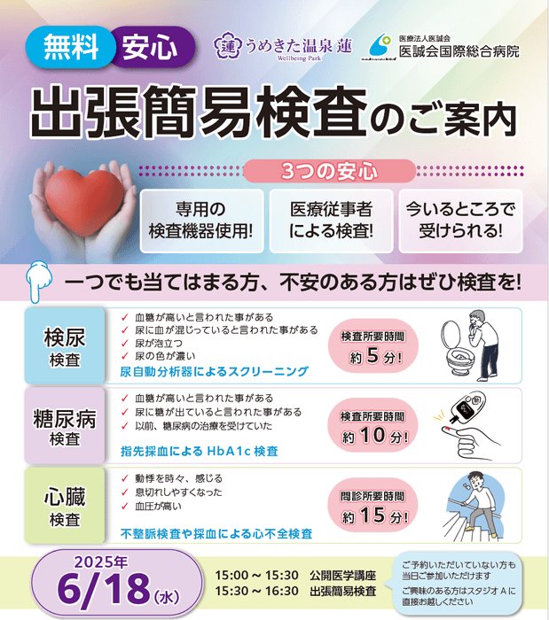 温泉×健康!公開医学講座&出張簡易検査をうめきた温泉 蓮で開催