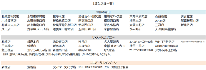 青山商事株式会社(本社:広島県福山市/代表取締役社長:青山理(おさむ))は、「洋服の青山」「ザ・スーツカンパニー」「ユニバーサルランゲージ」の主要58店舗で、スマートフォンを使用したQRコード決済サービス「LINE(ライン) Pay(ペイ)」と「メルペイ」の運用を2月1日(土)から開始します。