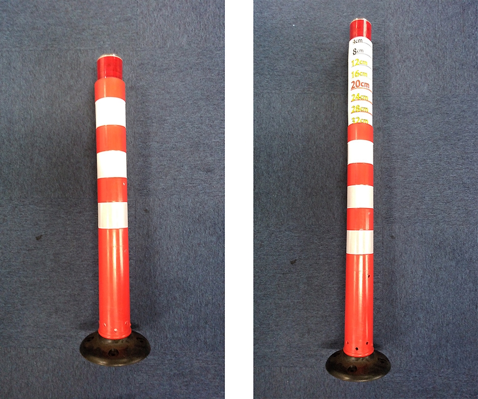 水深表示ポールのプロトタイプ(左:通常時、右:冠水時)