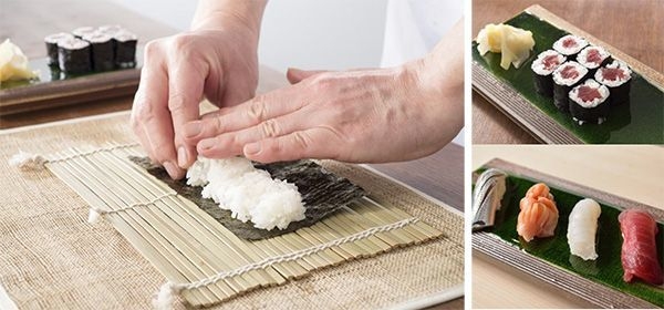 酢めしの作り方から巻きすの使い方まで板長が丁寧にお教えします。自分で作った巻き寿司&握り寿司は体験後にお召し上がりいただけます。お子様用のコックコートとコック帽姿での記念撮影もお楽しみいただけます。