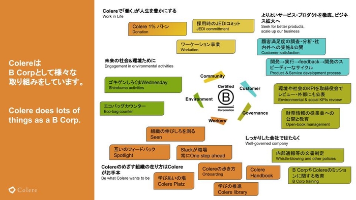 内容:ColereのB Corpとしての活動を一挙ご紹介。なぜB Corpを取得しようと考えたか、B Corpの基準を満たす会社作りとは何か、具体的にどのような施策を行っているかを解説します。