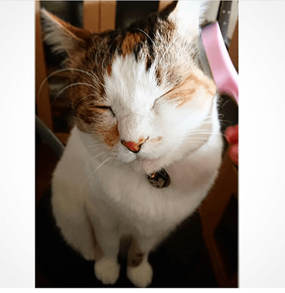 猫舌の感触で猫ちゃんリラックス。とろけ顔に。