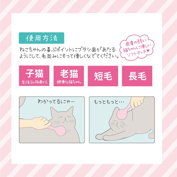 猫舌の感触で、皮膚の弱い猫ちゃんにも優しくソフトタッチ。