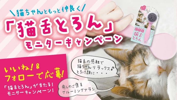 今回、猫のザラザラ舌を再現したグルーミングブラシ「猫舌とろん」をより多くの猫を飼っていらっしゃる方々へご利用頂きたく、モニターキャンペーンを実施致します。