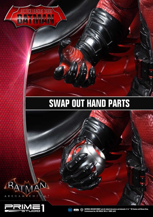 ゲームアーカムシリーズ『バットマン:アーカム・ナイト』よりスキンチェンジ機能で登場のジャスティス・リーグ3000コスチュームのバットマンがコンセプトマスターラインシリーズで立体化!!ジャスティス・リーグ3000版の赤が基調となる特徴的なスーツを3D立体造形で精密に立体化。