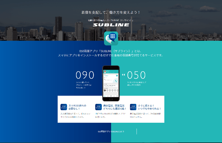 “仕事で使う”専用の050電話アプリ 「SUBLINE(サブライン)」12月1日サービス開始