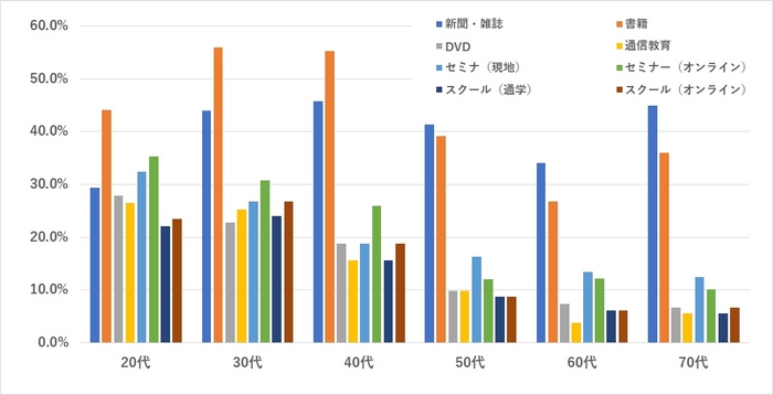 なお、全体として最も割合が高かったのは「書籍」の42.8%で、手頃であることから学習の入り口になっていることがわかります。その一方で、「DVD」や「通信教育」「セミナー」「スクール」といった、ある程度のお金を投じる必要のあるツールについては20代・30代といった若い世代の割合が高く、ここからも、若い人ほど株式投資の学習に積極的にお金を使っている実態が見えてきます。