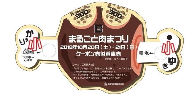 【まるごと肉まつりクーポン券付乗車券の概要、「まるごと肉まつり養老2018」へのご来場に便利な列車のご案内】
