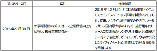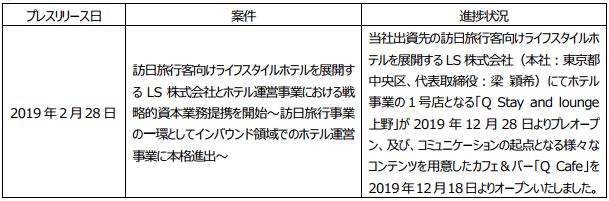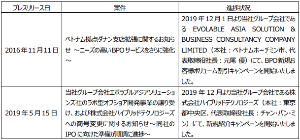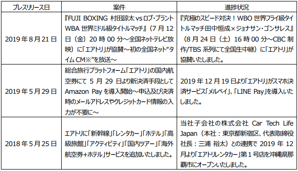 プレスリリース案件の進捗状況に関するご報告