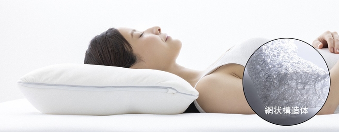 独自の網状構造体が、異なる硬さを組み合わせながら首のラインをやさしく支え、