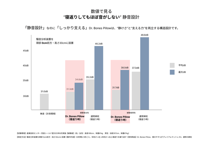 Dr.Bones Pillow for kumonoyasurgiは、仰向け・横向けのどちらでも平均面圧は基準以下