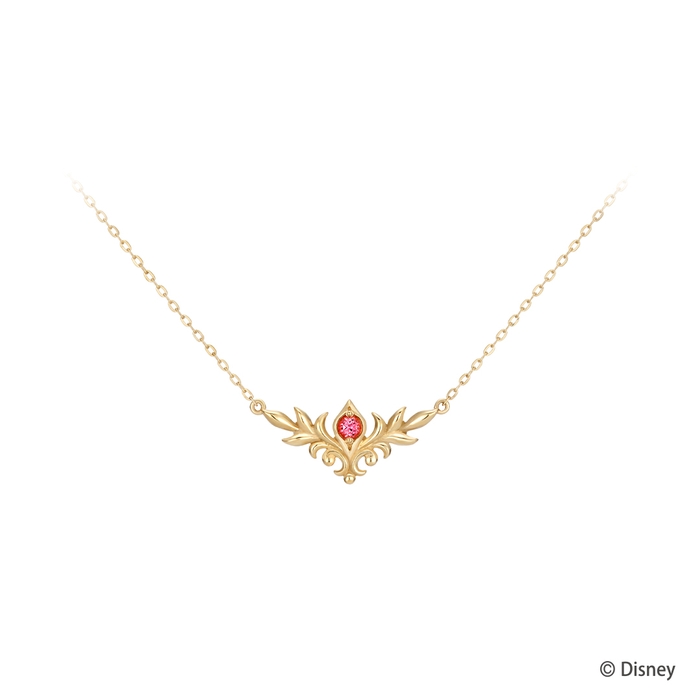 植物を思わせる有機的で繊細なデザイン。アナの衣装をイメージしたロードライトガーネットをあしらった、可憐な印象のネックレス。