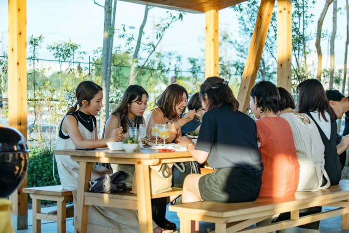 「堺原池BBQ matoi」は2022年4月1日、民間投資をもとに公園の利活用推進を図るPark‐PFI(公募設置管理)制度により、体育館や野球場、大型遊具などを備えた原池公園内にオープンしました。