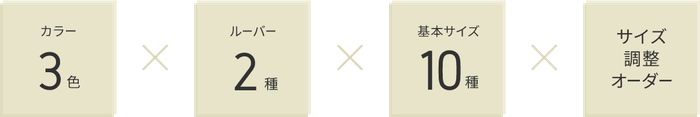カラ-は3色、ルーバーのタイプは2種類、基本サイズが10種類あり、サイズ指定を選ぶだけの簡単オーダー!