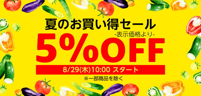 このたび、Amazon上のライフネットスーパーでは、2024年8月29日(木)の10時00分から9月2日(月)の9時59分までの期間、対象商品が表示価格より5%OFFとなる「夏のお買い得セール 5%OFF」を開催いたします。