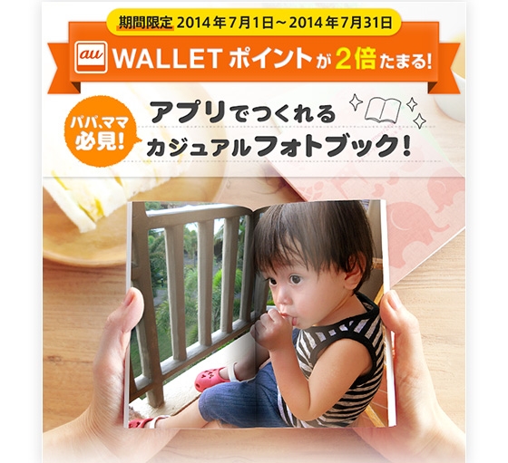 株式会社TOLOT(本社:東京都江東区、代表取締役社長:末松 亜斗夢)は、弊社が提供する『500円フォトブック TOLOT』の支払いに「auかんたん決済」を利用した際、付与されるWALLETポイントが通常の2倍になるキャンペーンを2014年7月1日(火)から7月31日(木)まで実施いたします。