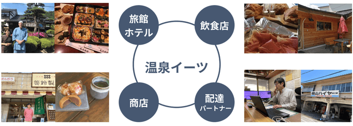 観光産業がストップしている現在、信州随一の温泉街である千曲市の戸倉上山田温泉街を中心に、人を動かすのではなく、美味しい温泉街グルメを中心とした「モノを動かす」ことにシフトしたサービス「温泉イーツ」を始めます。「行楽を届ける」をコンセプトで、旅館、飲食店、食品店、そして地元タクシーを含む配達パートナーがタッグを組み、店を超えてまとめて注文を取り・配達(まとめてテイクアウトをあり)を協業する新しい仕組みです。