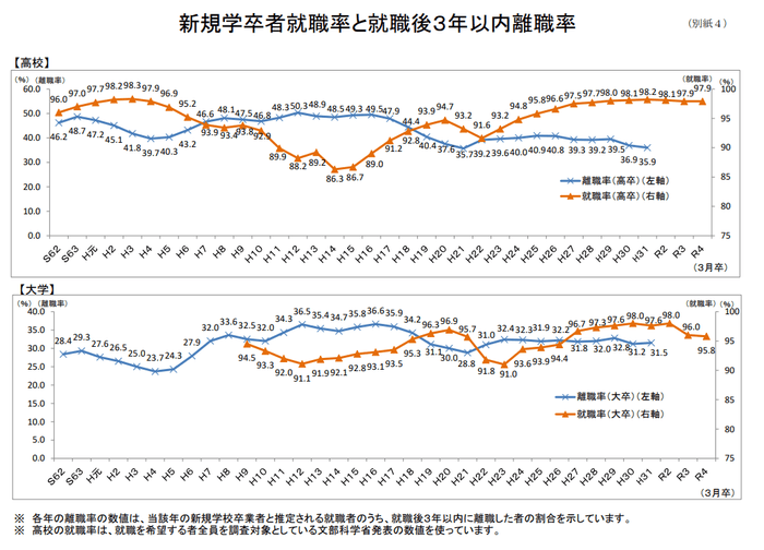 出典:厚生労働省「新規学卒就職者の離職状況(平成31年3月卒業者)」