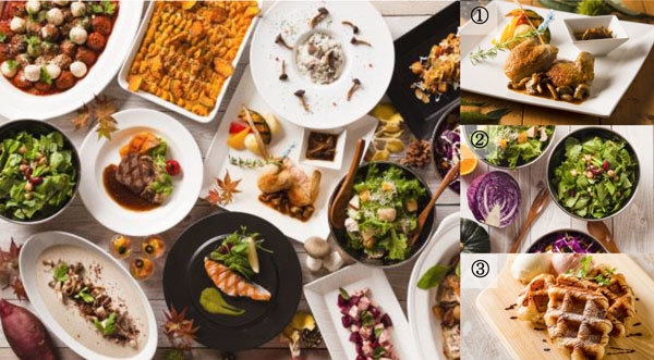旬野菜バイキング&「メイン料理」 さらにパワーアップしたラインナップでご用意 ローストチキンにワッフルが初登場!秋の味覚とかぼちゃフェア! マルシェダイニング「ネン」にて 9月1日(金)より開催