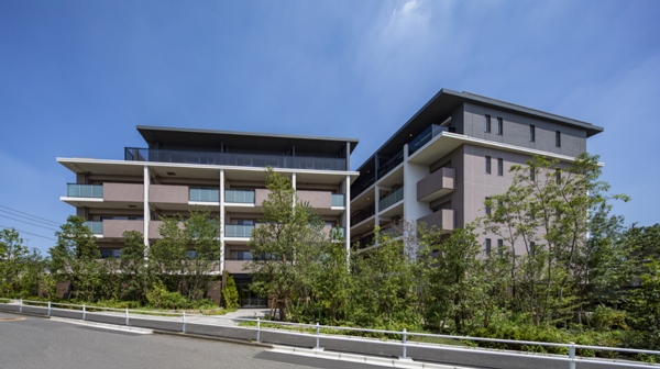 戸建て住宅が建ち並ぶ周囲の環境に合わせて、ボリュームを分節し、3棟の低層分棟配置とした集合住宅である。傾斜地を活かした配棟計画は、周囲への圧迫感を低減するだけでなく、歴史をふまえた景勝地の眺望を獲得している点が素晴らしい。暖色カラーでコーディネイトされたファサードは、住宅街にふさわしく暖かみを感じさせるが、水平ラインを強調したスラブなどモダンな要素とも調和がとれている。敷地周辺に自生していたであろう樹種が植えられた庭園は、時間が経つにつれて、より周囲の環境に溶け込んでいくであろう。
