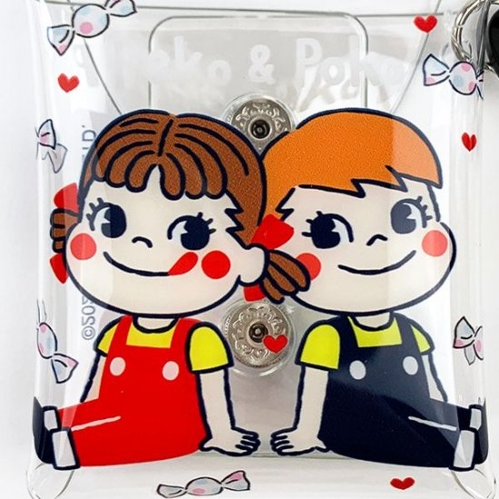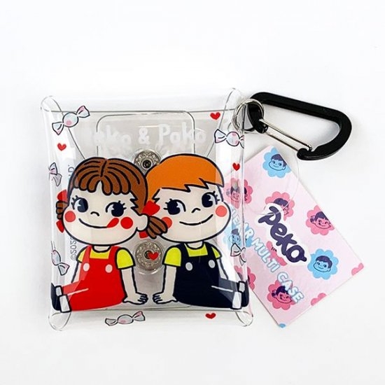 クリアマルチケースいっぱいに描かれたペコちゃんとポコちゃん。仲良くお座りしているとってもキュートなマルチケースです♪