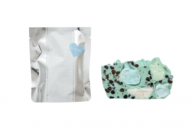 チョコミントチョコレートにミントバブレッツ、カカオニブが入った新作。