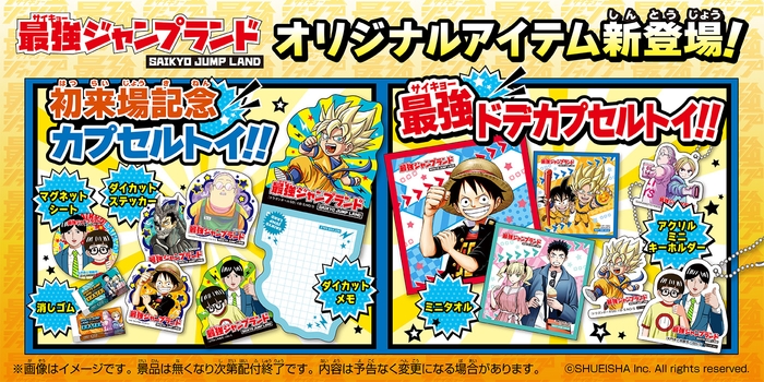 初来場時に回すことができる「初来場記念カプセルトイ」および、会場内で遊んで“最強ジャンプランドパスポート”のお宝スタンプを3つ集めて回せる「最強ドデカプセルトイ」に最強ジャンプランドのオリジナルアイテムが新登場!