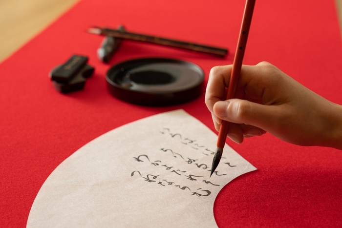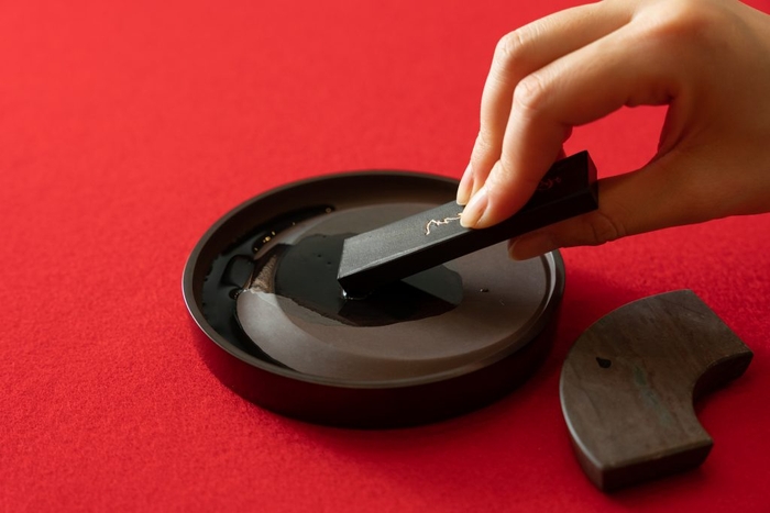 界ブランドのおもてなしの一つ、ご当地の文化を体験する「ご当地楽」として、「おとなの墨あそび」を提案します。山口県の伝統工芸「赤間硯」で墨をすり、芳香を感じ、墨の良さを実際に体験し、扇形の型紙に自身の思いを綴ります。