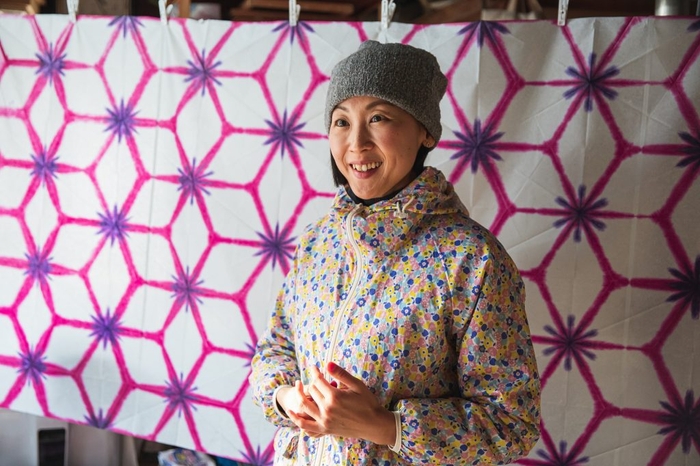 今まで制作したことのない大きな作品と染色だったので、この大きさに仕立て、綺麗に染色することに苦労しました。300枚近くすいた和紙の大きさを整え、何度も染色のトライアルを重ねて仕上がった作品です。お部屋に入った時に喜んでいただけると嬉しいです。