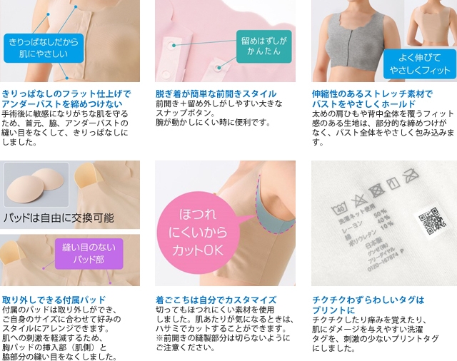 手術後のキズや敏感な肌のセルフケアに。脱ぎ着がしやすい前開きハーフトップ