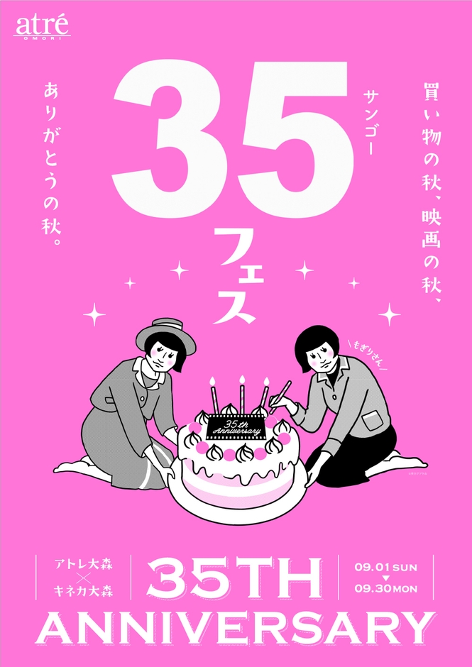 株式会社アトレ(本社:東京都渋谷区、代表取締役社長:一ノ瀬俊郎)が運営するアトレ大森(所在地:大田区大森北1-6-16)は、9月1日(日)~30日(月)の1か月間、開業35周年を迎える2施設によるコラボ企画『アトレ大森×キネカ大森 35TH ANNIVERSARY』を開催します。