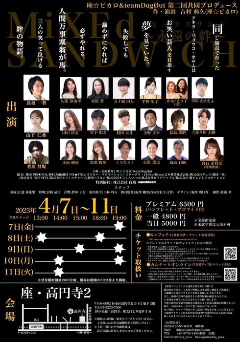 座☆ピカロ& teamDugOut『MiXEd SANDWICH~永遠の絆~』が2023年4月7日 (金) ~2023年4月11日 (火)に座・高円寺2(東京都杉並区高円寺北2-1-2地下2階)にて上演されます。