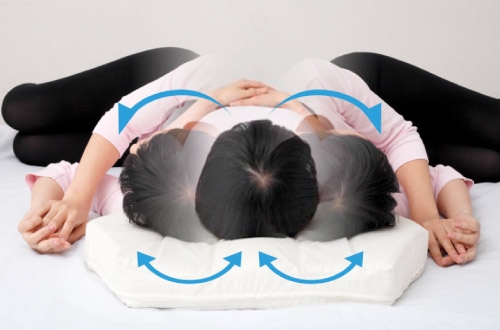 また、寝返り時は寝姿勢が崩れやすく、頭と肩の高さが変わるため肩周りに負荷がかかりやすいタイミングです。負担を軽減するためには、頭・肩の高さが変わる寝返り時・仰向け時・横寝時と、どの寝姿勢にも頭と肩がフィットする高さが必要です。そのためには寝姿勢に合わせて高さが調整できる構造の枕がポイントです。