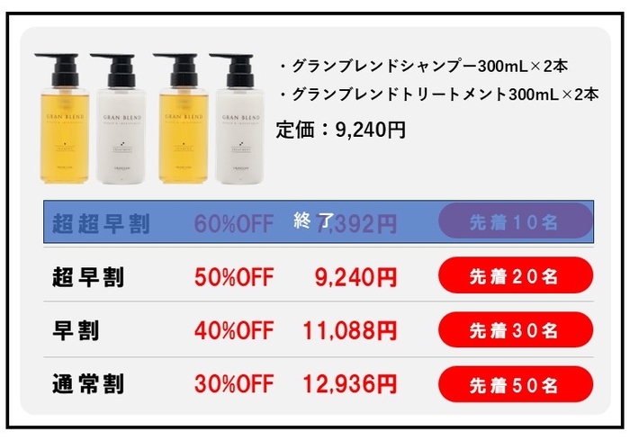 ・超超早割【60%OFF】 7,392円 先着10名 ※終了