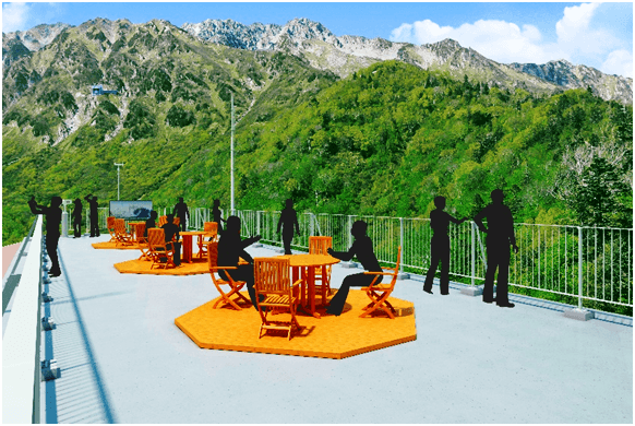 富山と長野を結ぶ山岳観光ルートである「立山黒部アルペンルート」内に位置する黒部平駅(標高1,828m)に、この夏新しくテラスが誕生します。当駅は、扇沢から入ると日本一の高さを誇る「黒部ダム」から黒部ケーブルカーで約5分に位置し、立山駅から入ると大観峰から立山ロープウェイで約7分の所に位置します。