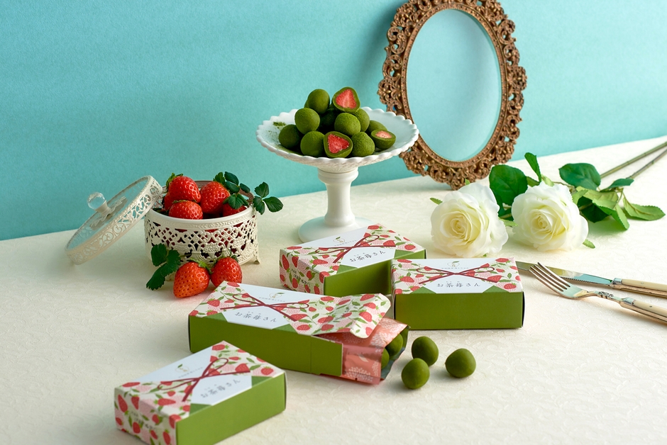 2018年11月にリニューアルした『苺抹茶ちょこれーととりゅふ お茶苺(おちゃめ)さん)』。上薄茶用の抹茶を使用した抹茶チョコレートで、まるごとフリーズドライした苺をコーティングしたお茶苺さんは、バレンタイン・ホワイトデーだけでなく手土産としても大人気。「小分けで配りやすいパッケージが欲しい」とのお声から、今回、4個入パッケージが誕生しました。