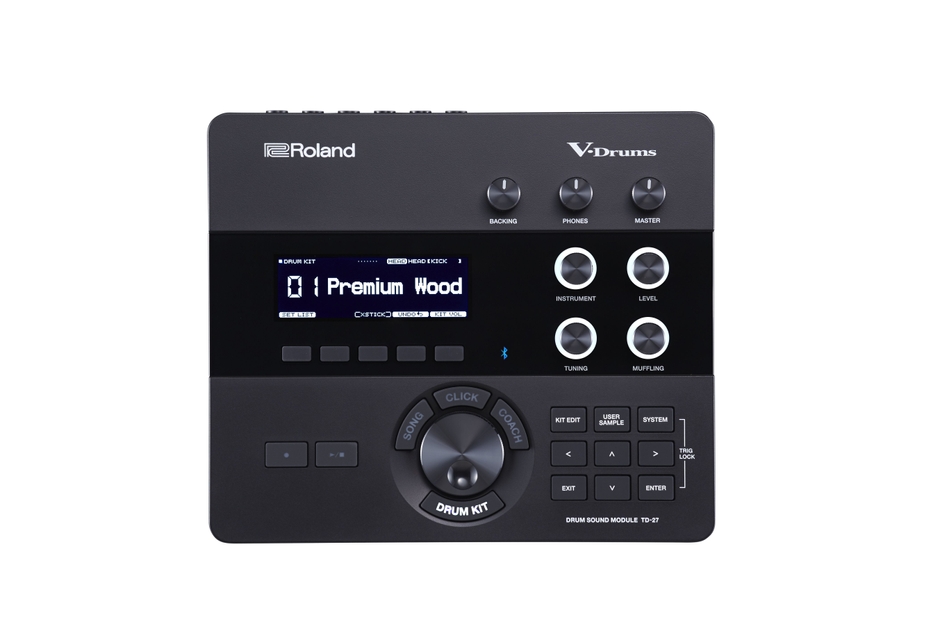 さらに、『TD-27KV』は、リズム感覚を磨く基礎練習機能を搭載。単調になりがちな日々の練習をサポートします。Bluetooth(R)機能も装備し、スマートフォンとワイヤレス接続して、お気に入りの曲やレッスン動画に合わせて演奏することもできます。