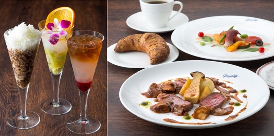 また、テラス席で提供される3種類のドリンクはお客様の目の前で凍らせたミルクを振り掛けるフローズンミルクラテや、ホテル開業25周年にあわせて約25年前に大流行したナタデココを使ったフルーツココなど、どれも見た目も華やかで清涼感たっぷり。コース料理とあわせてご注文ください。
