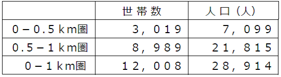 ・店舗から1㎞圏内は、2人世帯以上の構成比が大阪府平均を上回る地域です。