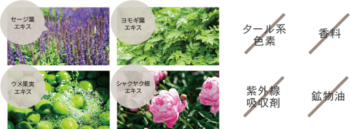 ※3 セージ葉エキス、ヨモギ葉エキス、ウメ果実エキス、シャクヤク根エキス