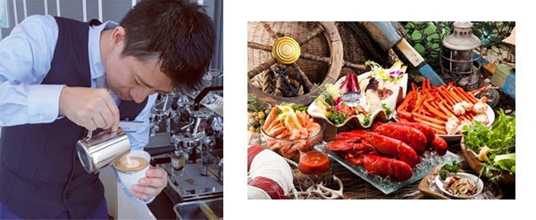 フランス料理のコースと当ホテルならではのシーフード料理の後、バリスタが作るラテアートを楽しみながらゲストとより近い距離で、ゆったりした時間を過ごせるウエディングプランです。装いもカジュアルに、土日だけでなく平日の仕事帰りの気軽なパーティーとしてもご利用ください。
