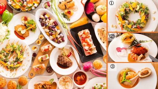 旬の食材をたっぷりと使用した、寒い冬にぴったりのあたたかいお料理が充実しております。「旬野菜バイキング」と、できたてを味わう「選べるメイン料理」を一緒にお楽しみください。