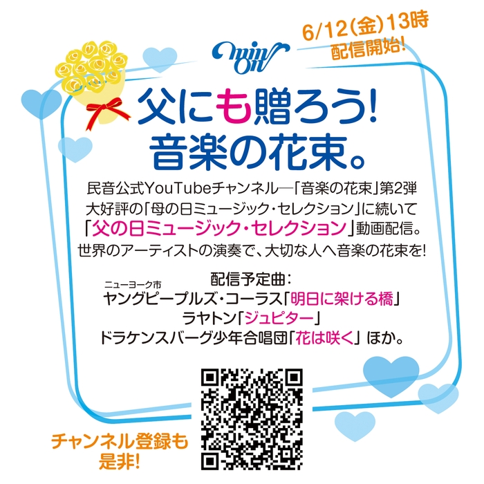 一般財団法人民主音楽協会(民音)は前回大好評を頂きました「母の日ミュージック・セレクション」に続き、「父の日」に民音公式YouTubeチャンネルで、「父の日ミュージック・セレクション」を動画配信いたします。