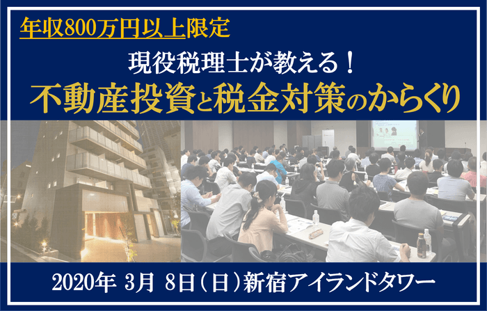 本セミナーでは高収入の方だからできる不動産投資の運用方法について基礎から解説。加えて税理士の方に登壇していただき、不動産投資ではどのような税金対策ができるかお話ししていただきます。