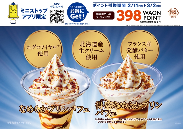 ミニストップは、販売数No.1の人気パフェ「なめらかプリンパフェ」(税込価格:398円)※1と「得盛なめらかプリンパフェ」(税込価格:498円)※1を、2022年2月11日(金)より、国内のミニストップ店舗にて発売します。