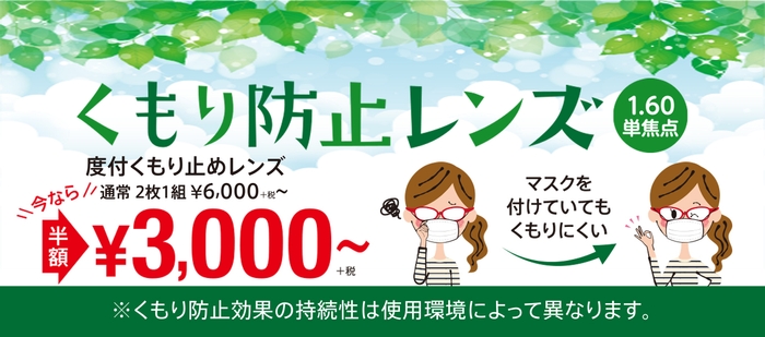 マスク着用時のにレンズがくもって困る、そんな時に大活躍のくもり防止機能付きレンズを、