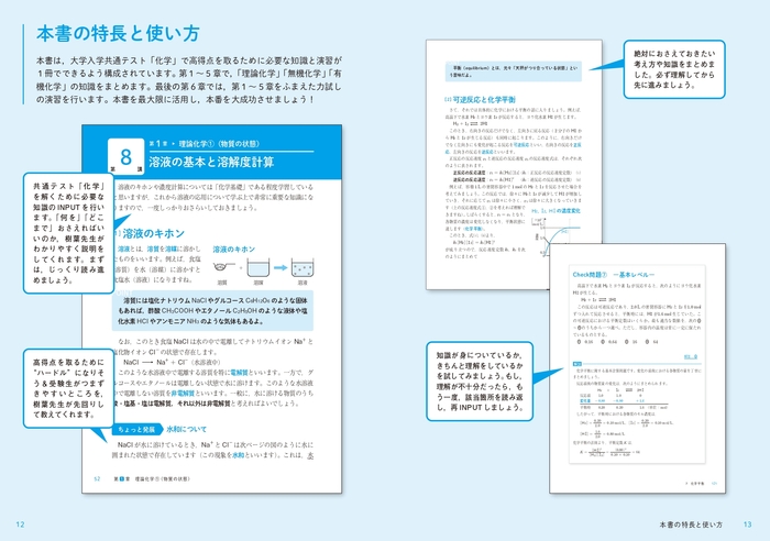 本書は、理解しておくべきことは具体例などを挙げながら説明して、そのあとに覚えるべき内容を整理してしっかり知識を定着できるように各単元を構成しています。ですから、化学が苦手な受験生でも無理なく一人で学習できます。