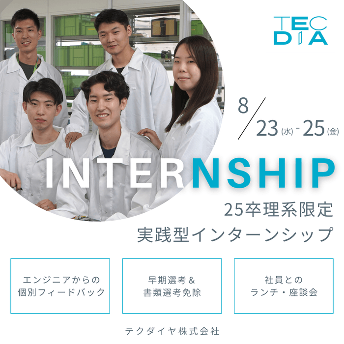 【25卒理系学生・院生対象】テクダイヤ株式会社、実践型インターンシップ参加者募集中!応募締め切りは7/31(月)!
