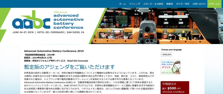 会議:「Advanced Automotive Battery Conference 2019-先進自動車用電池会議 2019年」
