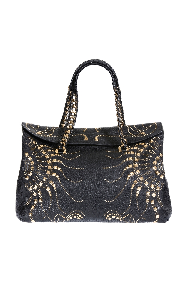 日中だけでなく、夜もまぶしい光を放つバッグです。太陽の光をイメージした装飾の粒状のスタッズが施されています。